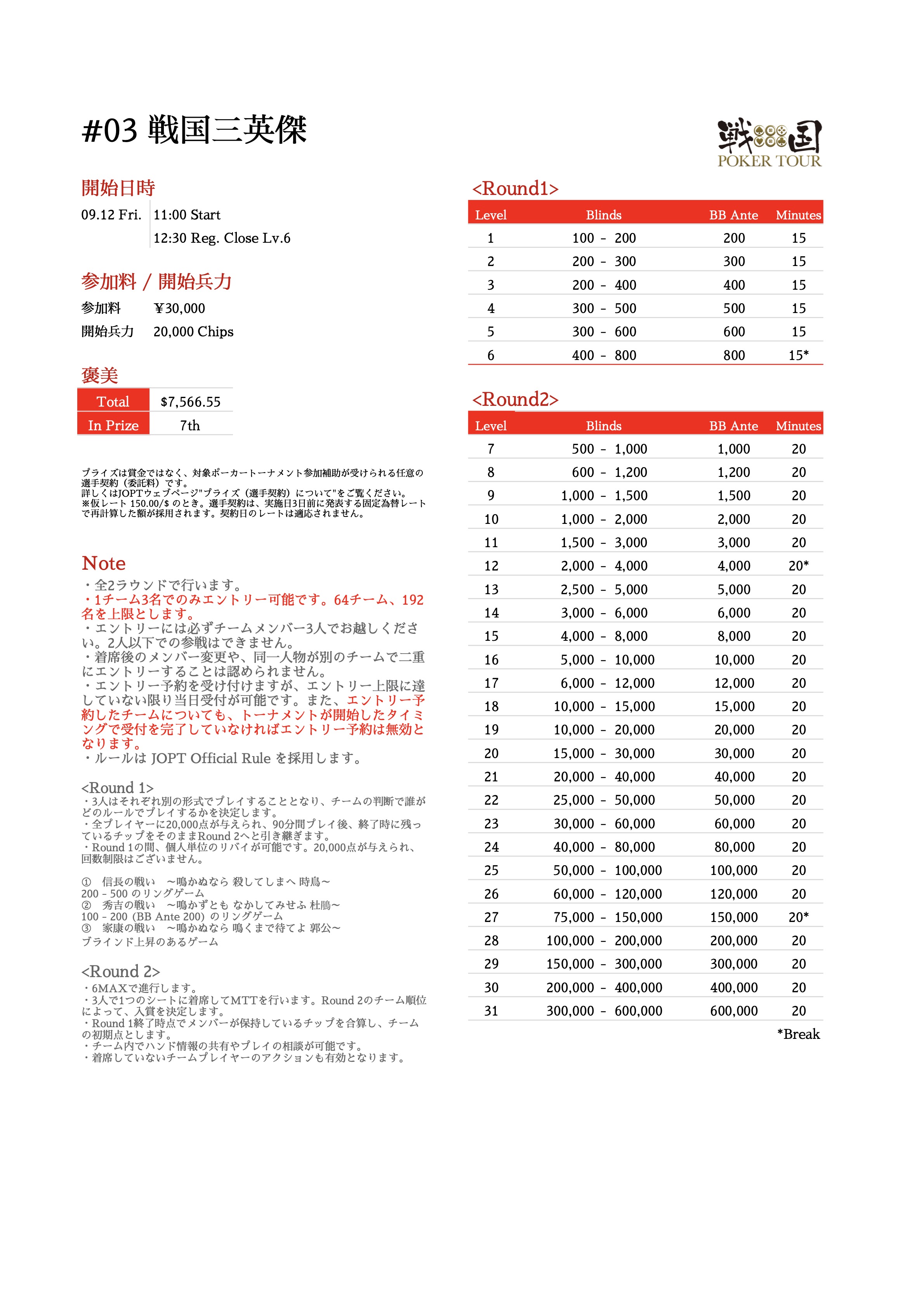 | 10/31(金) | 19:00 | 【JOPT Osaka】#13 Tag Team | JAPAN OPEN POKER TOUR |