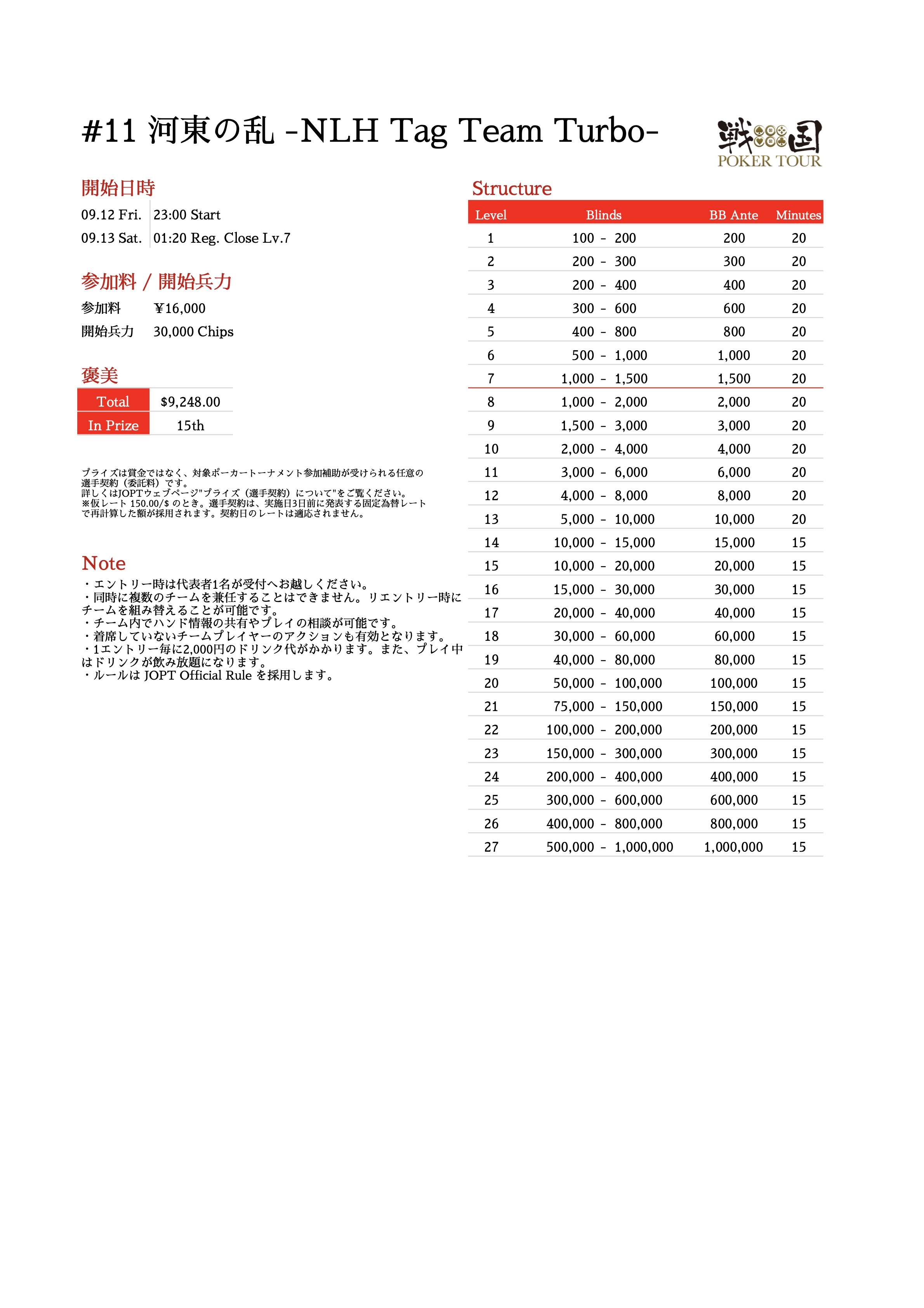 | 10/31(金) | 19:00 | 【JOPT Osaka】#13 Tag Team | JAPAN OPEN POKER TOUR |