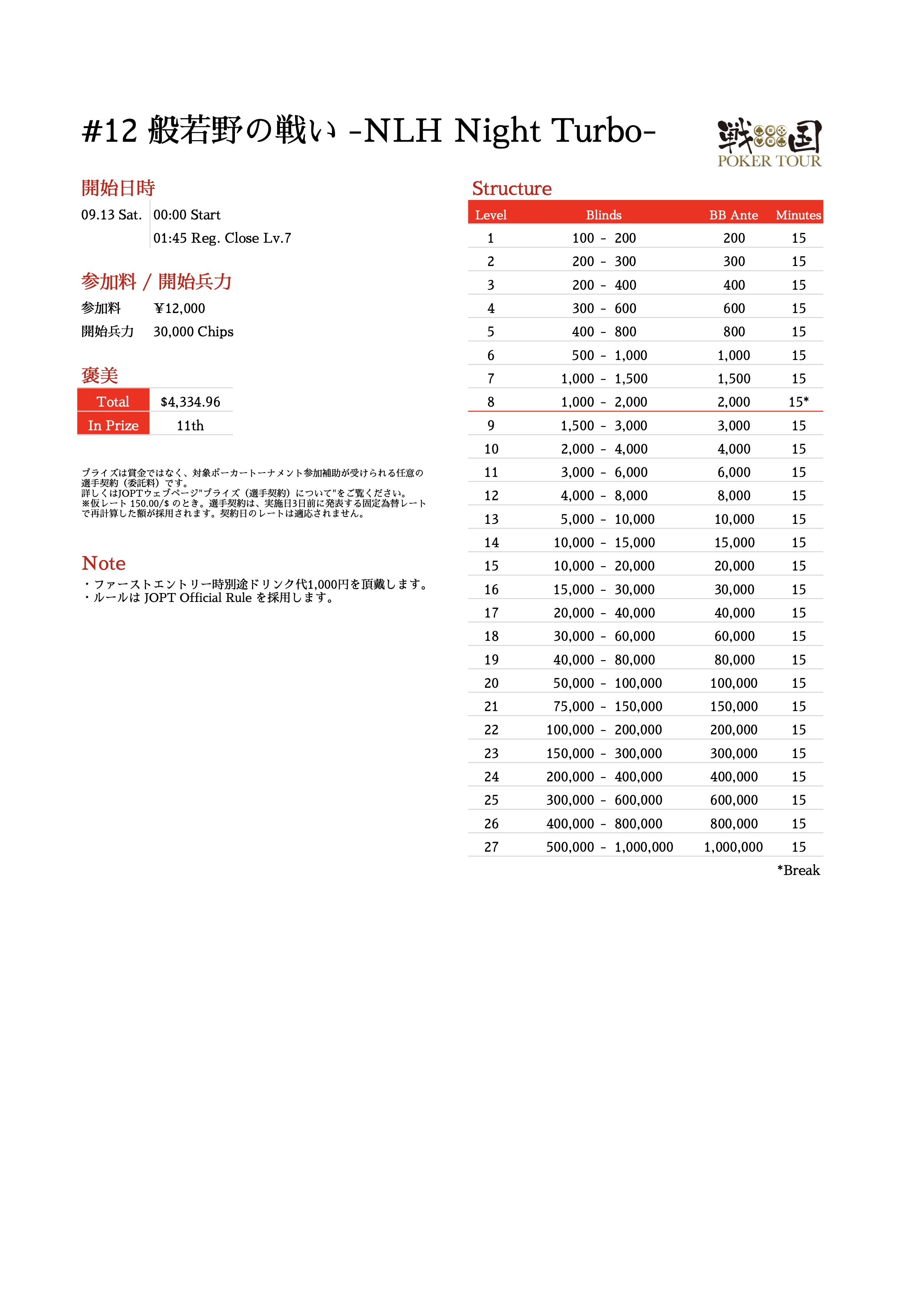 | 10/31(金) | 19:00 | 【JOPT Osaka】#13 Tag Team | JAPAN OPEN POKER TOUR |