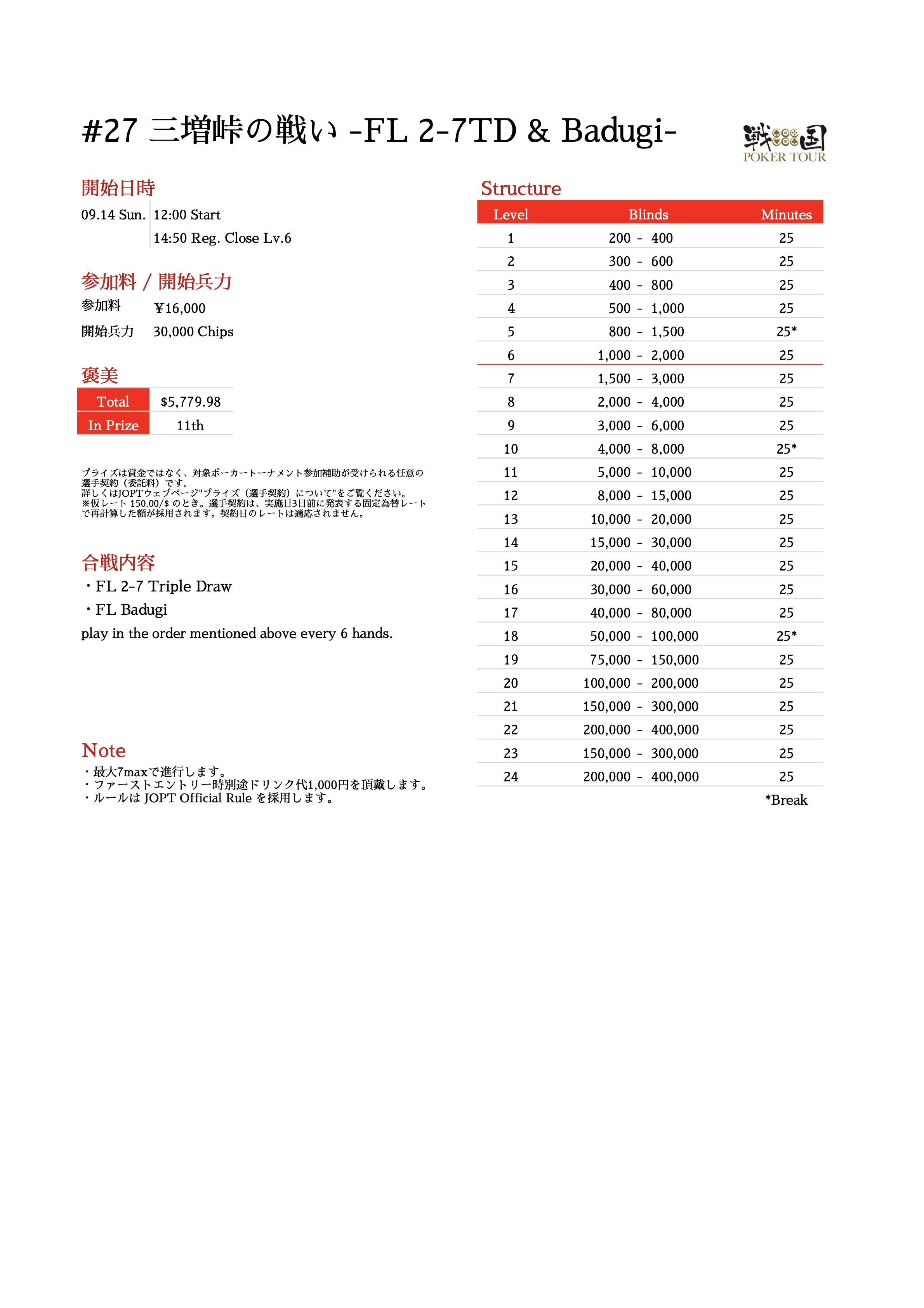 | 店舗名 | JAPAN OPEN POKER TOUR |