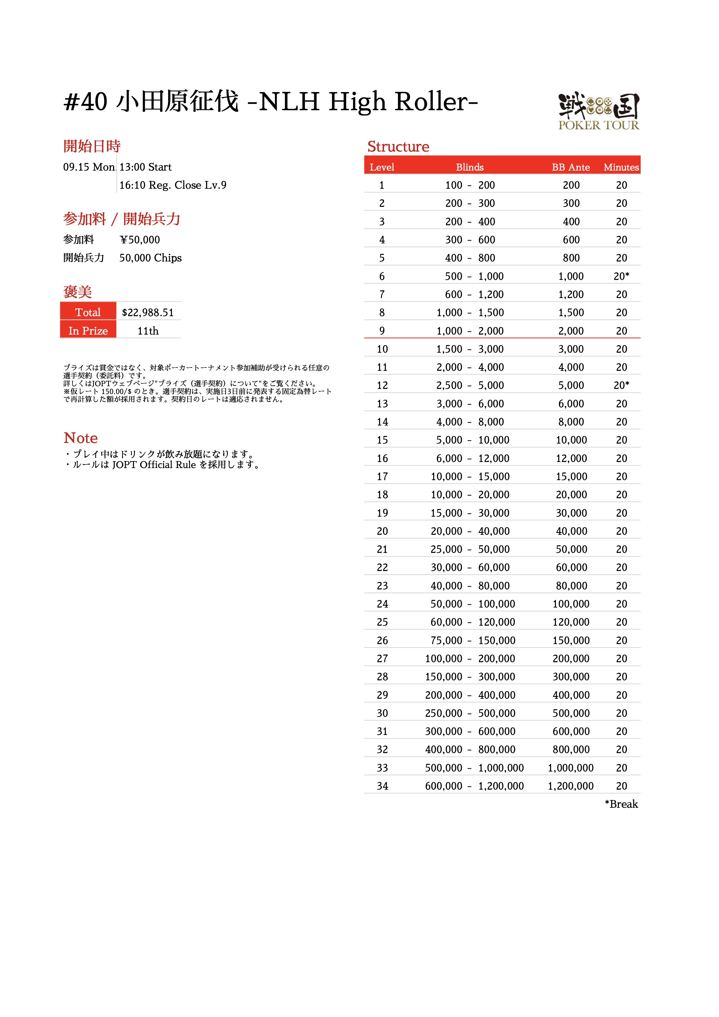 | 店舗名 | JAPAN OPEN POKER TOUR |