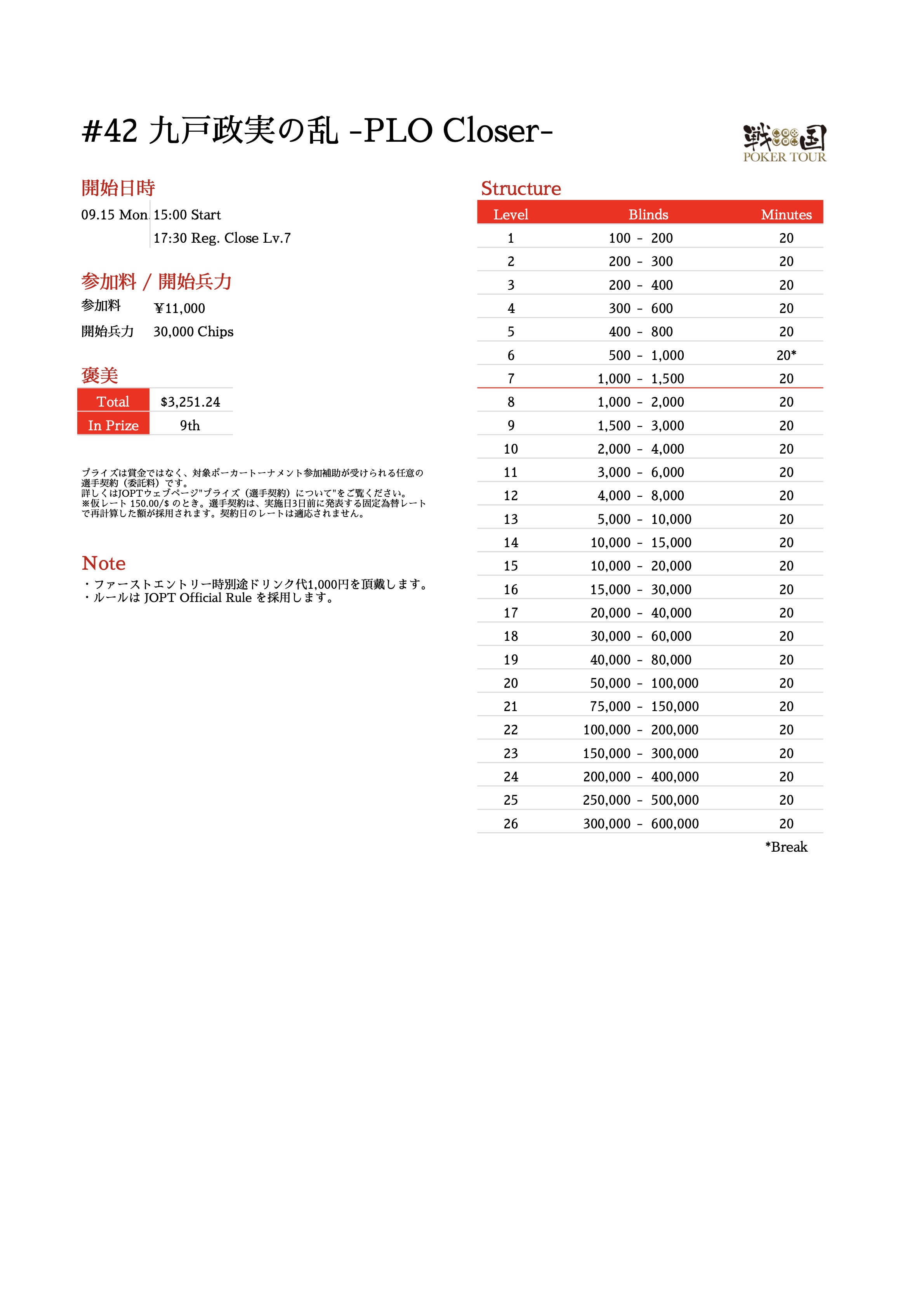 | 店舗名 | JAPAN OPEN POKER TOUR |
