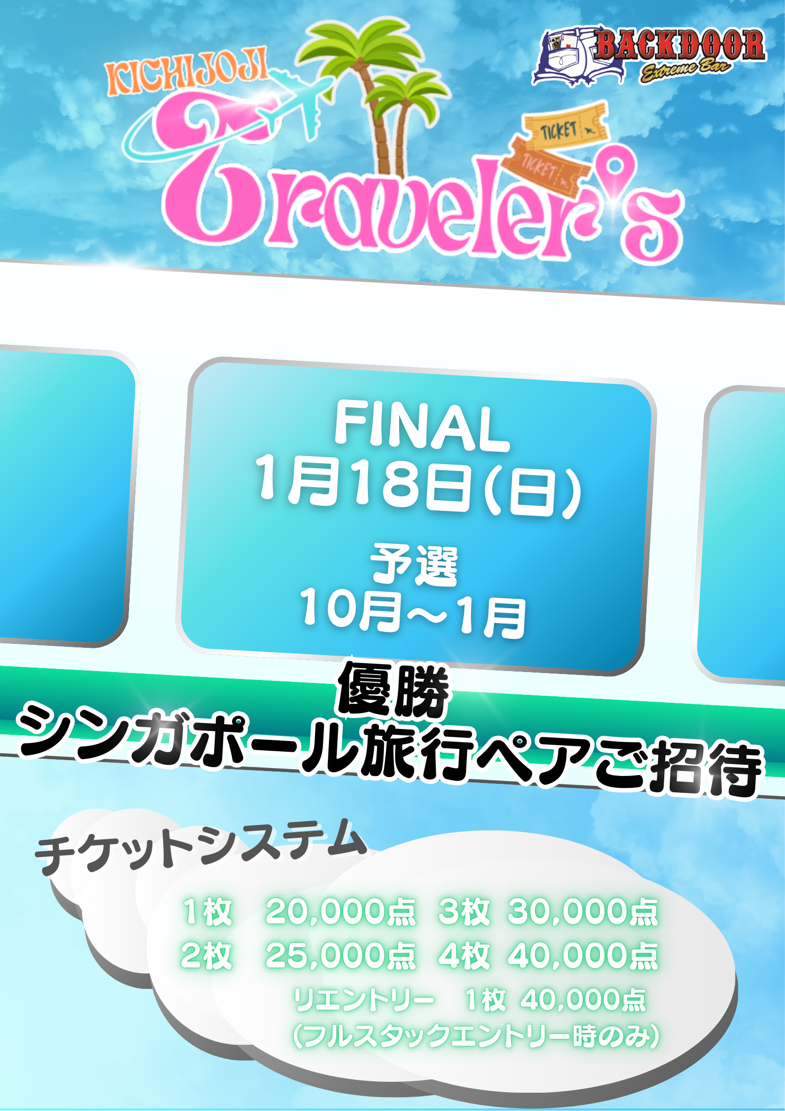 ※KICHIJOJI Traveler's 決勝戦参加権利は複数枚獲得で決勝のアドオン権として利用できます。