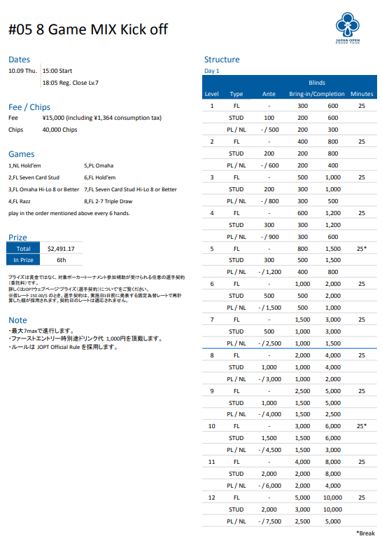 JOPT 2025 Osaka #02 | 10/30 - 11/3 |