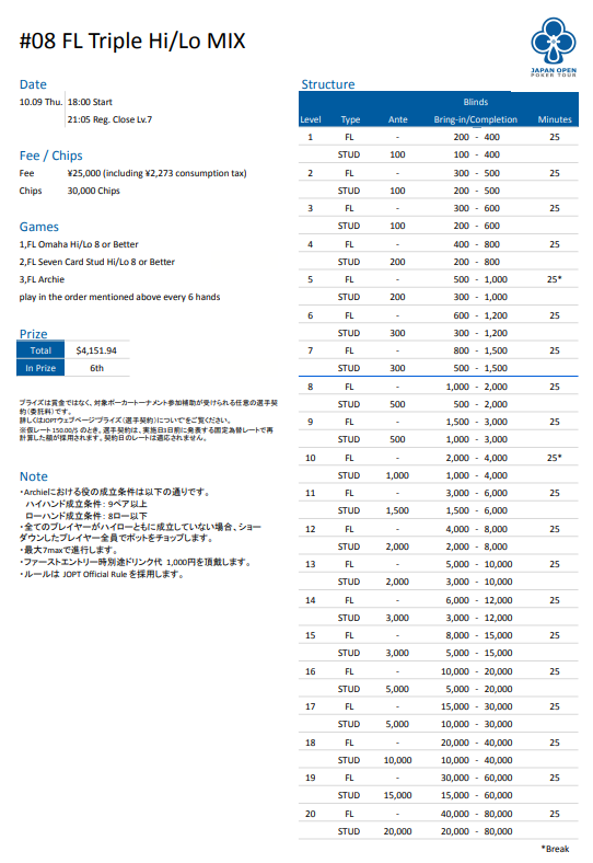 JOPT 2025 Osaka #02 | 10/30 - 11/3 |