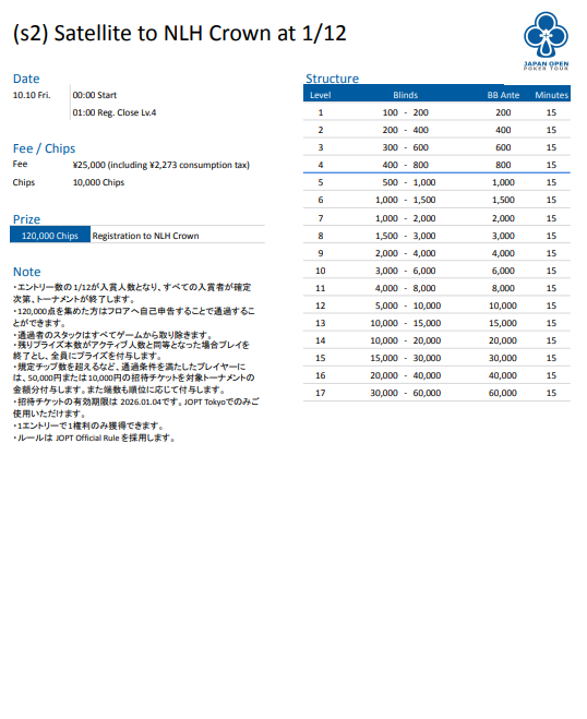 JOPT 2026 Tokyo #01 | 2025/12/27 - 2026/1/4 |