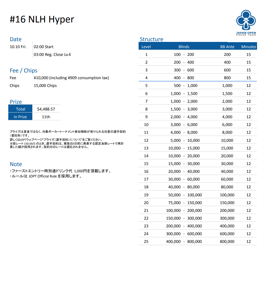 店舗名 | JAPAN OPEN POKER TOUR |