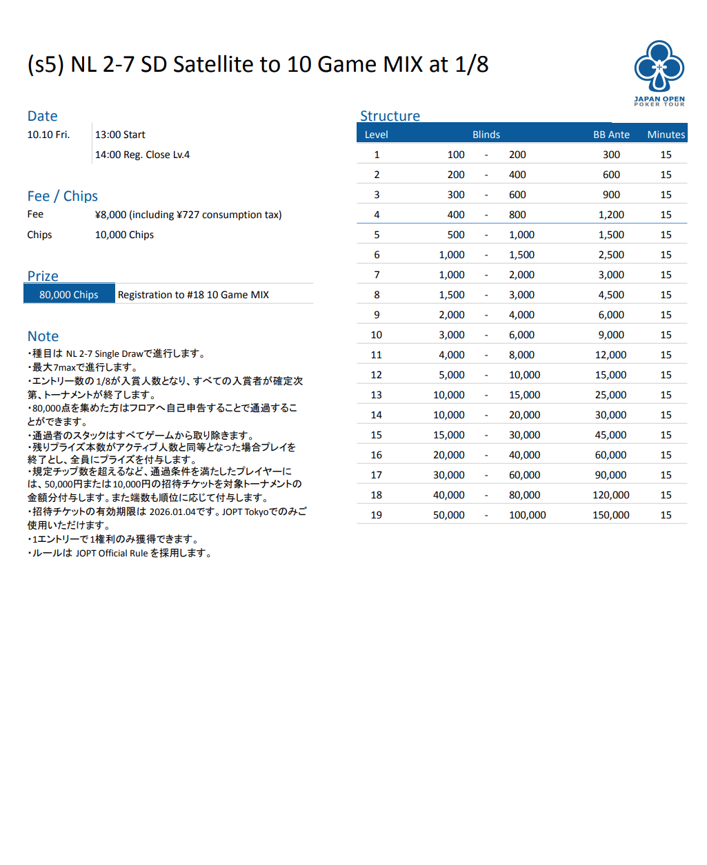 JOPT 2025 Osaka #02 | 10/30 - 11/3 |