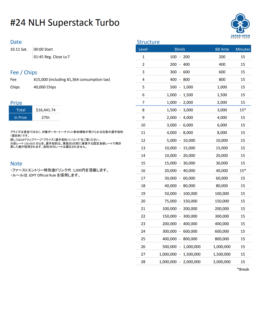 JOPT 2025 Osaka #02 | 10/30 - 11/3 |