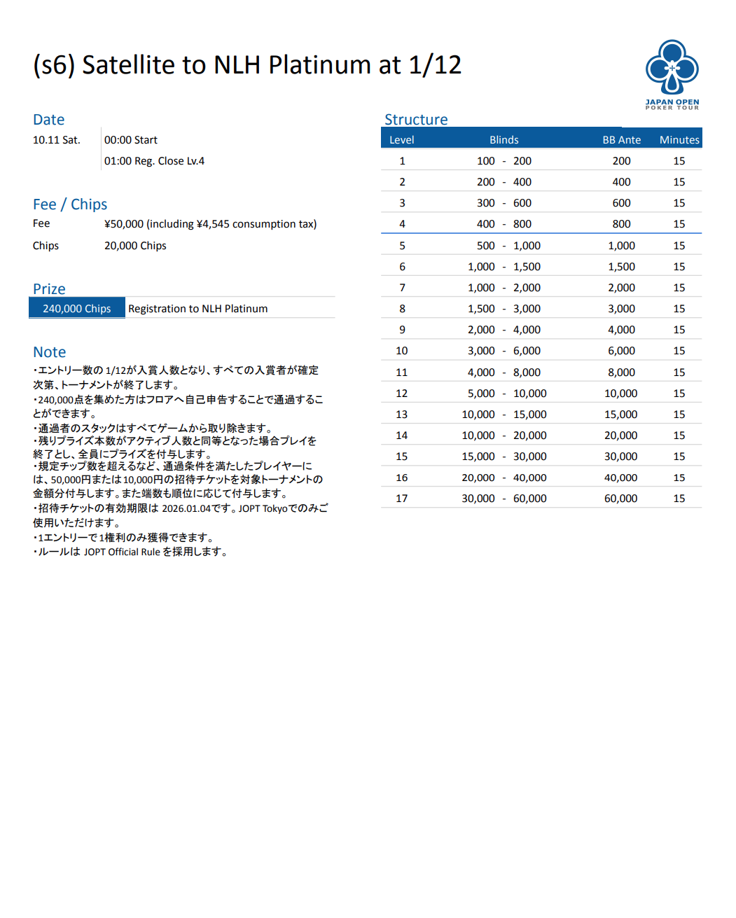 JOPT 2026 Tokyo #01 | 2025/12/27 - 2026/1/4 |