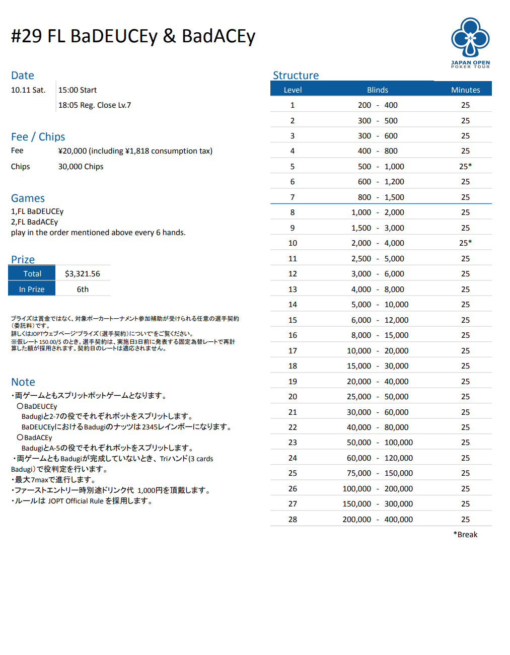 店舗名 | JAPAN OPEN POKER TOUR |