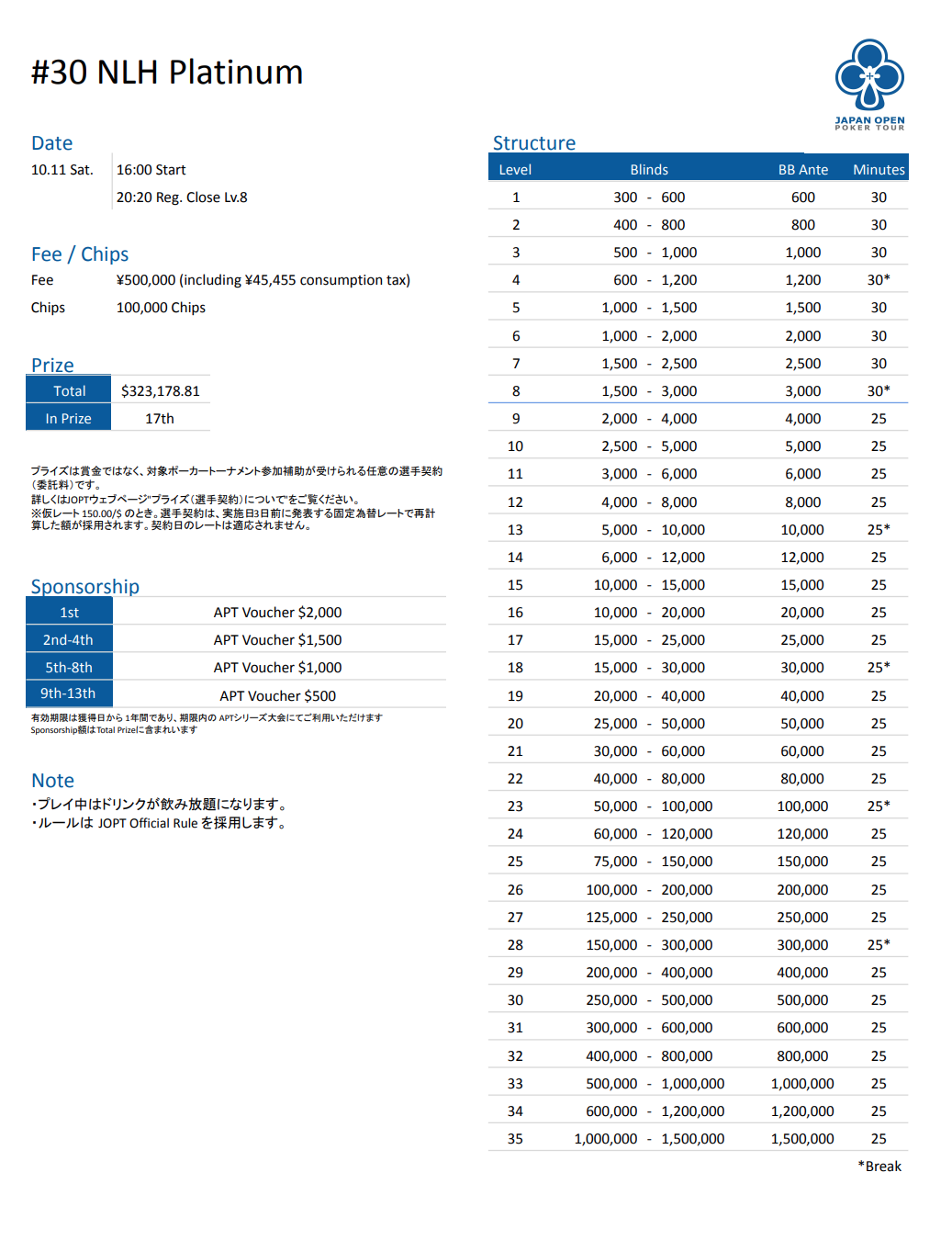 JOPT 2025 Osaka #02 | 10/30 - 11/3 |