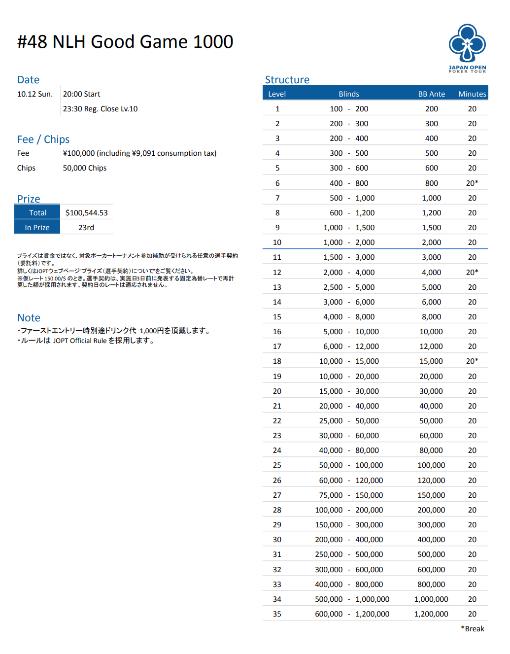 店舗名 | JAPAN OPEN POKER TOUR |