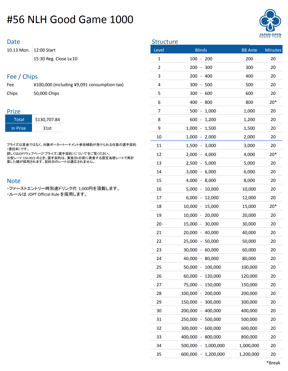 JOPT 2025 Osaka #02 | 10/30 - 11/3 |