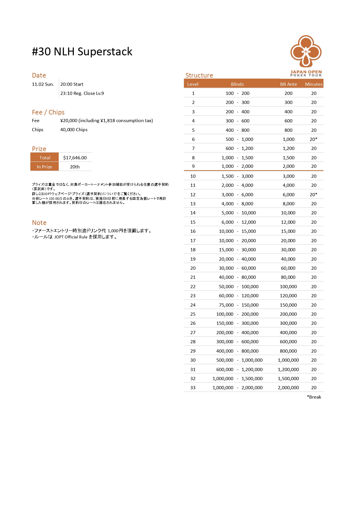 公式ページ | https://japanopenpoker.com/wp-content/uploads/2025/JOPT_2025_Osaka_02/Players_Guide_JP.pdf |
