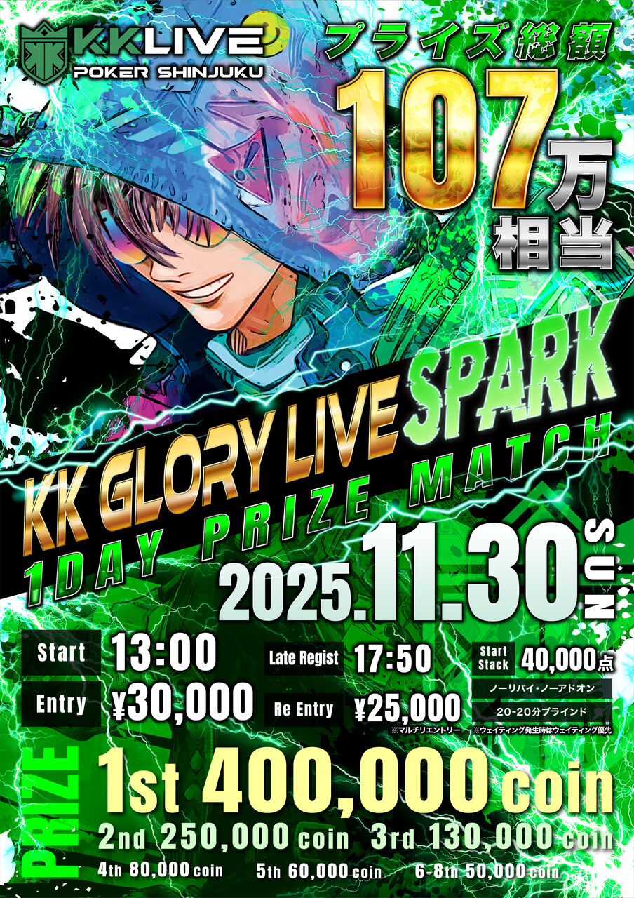KK GLORY SPARK 30K(総額107万コイン相当 1day プライズマッチ)