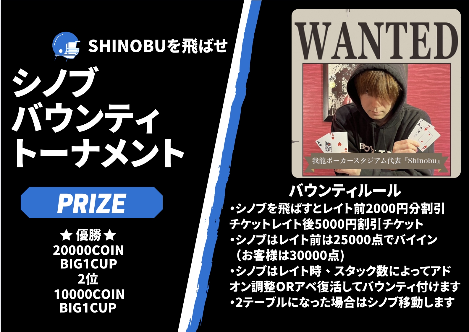 シノブバウンティトナメ【30000保証】【19:30まで着席で無料フリップ権利】WEBCOINトーナメント