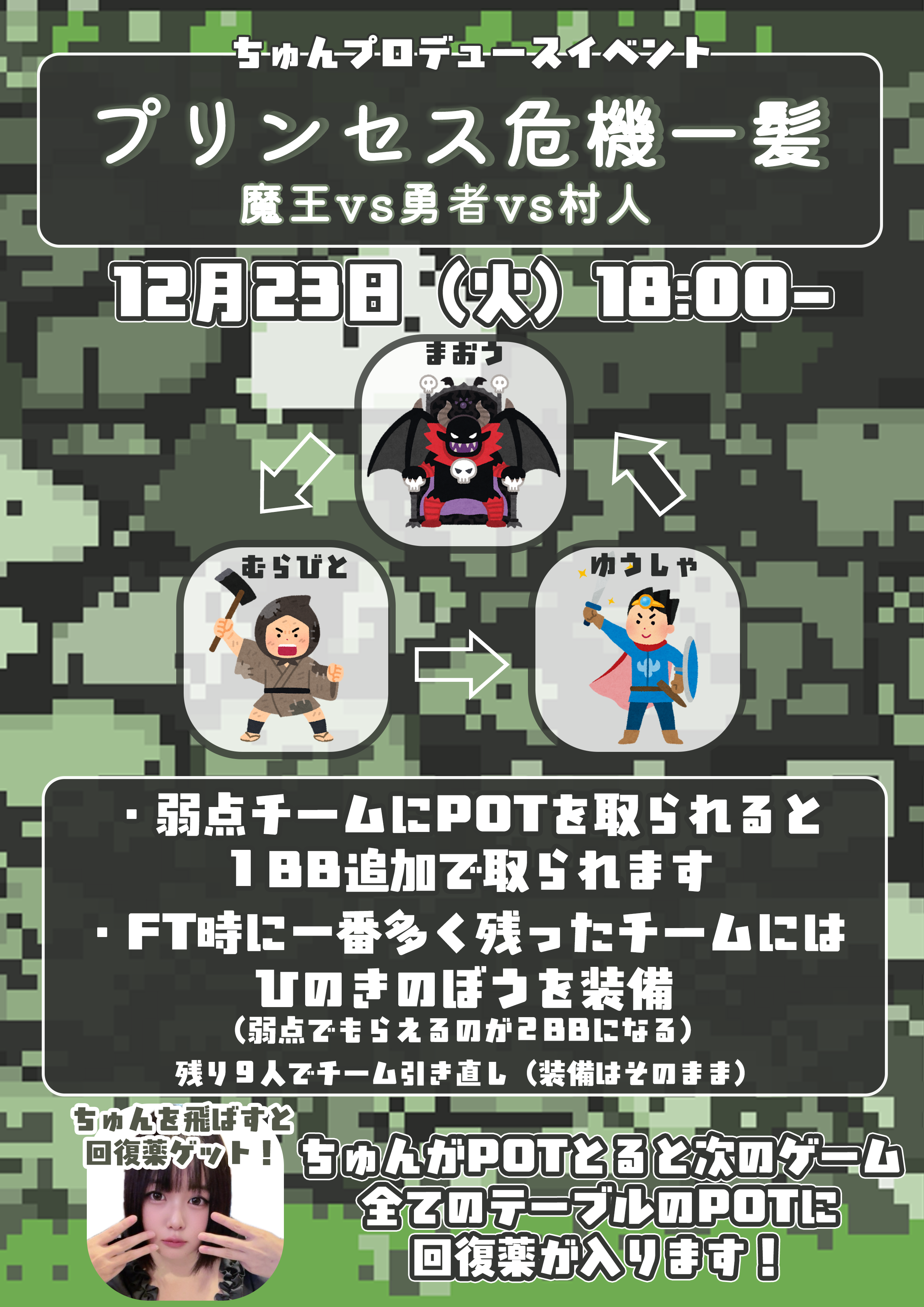 | ゲーム | 30,000点 / ノーリミット / テキサスホールデム / 20Min. / ポイントなし |